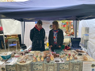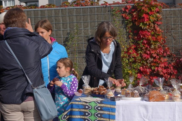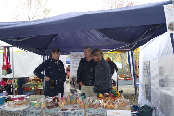 Hinterkappeler Dorfmärit am 19. Oktober 2024. Kuzivana-Vorstandsmitglieder Barbara und Daniela Kohler, Ueli Haller, Ursula Müllener und Sabine Horn stehen hinter einem reich belegten Stand von frischen, leckeren Backwaren. Diese wurden von zahlreichen Unterstützerinnen und von uns selber hergestellt und gegen Spenden an die MarktbesucherInnen verteilt. Reste gab es fast keine, eingenommen haben wir über 1700 Fr.! Offenbar hat’s geschmeckt. Der nächste Dorfmärit in Hinterkappelen findet am Samstag, 18. Oktober 2025 statt. Wir freuen uns Euch zu sehen.
